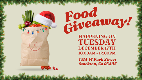 - Our monthly food giveaway will happen on DECEMBER 17th from 10:00AM to NOON.